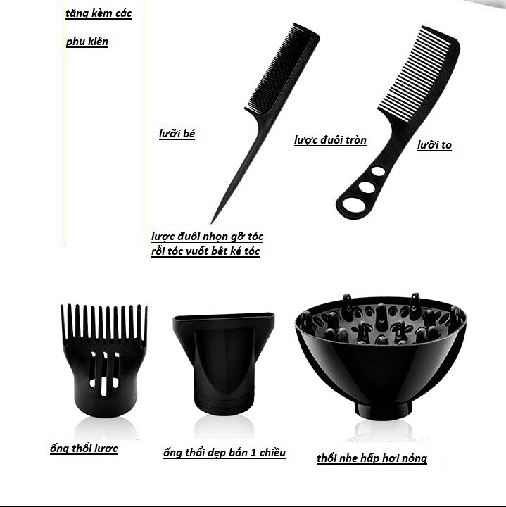 - Bộ 5 Phụ Kiện Hàng Cao Cấp: Tận hưởng sự linh hoạt với bộ 5 phụ kiện kèm theo, bao gồm những công cụ chuyên nghiệp giúp tạo kiểu và chăm sóc tóc một cách đa dạng.